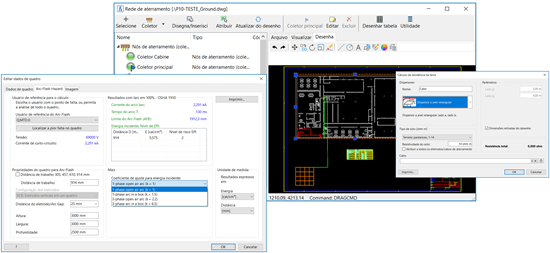 Definição da rede de aterramento, com a possibilidade de representar dispersores, cabos, coletores e integração com o software de cálculo Ampère;