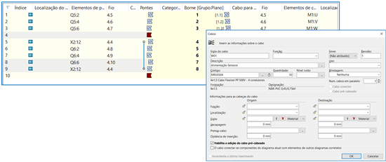 Novos campos para classificação, revisão da lista de cabos, a fim de personalizar os documentos/desenhos;
